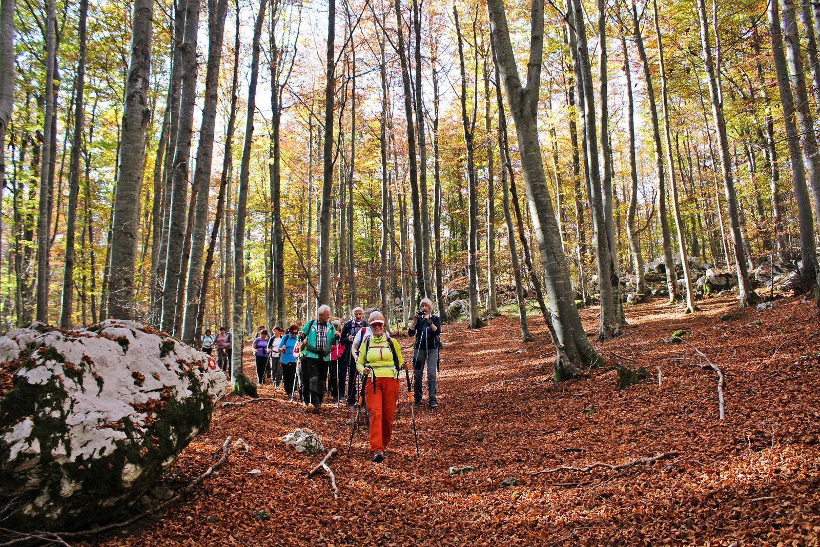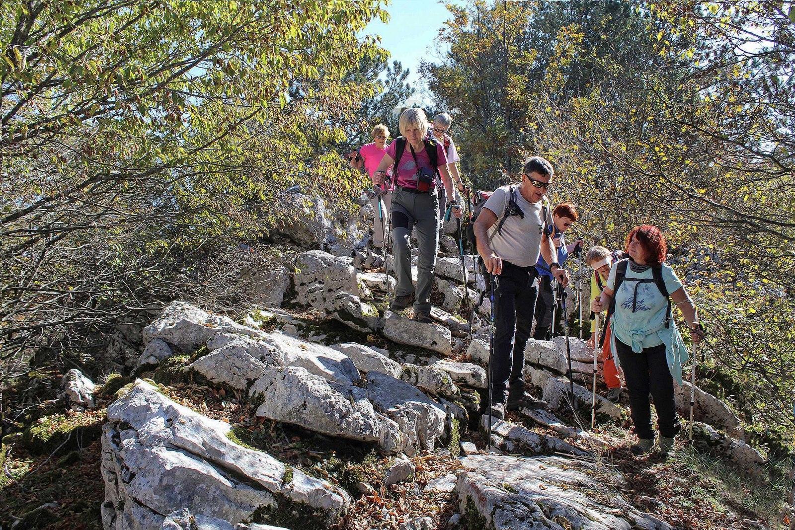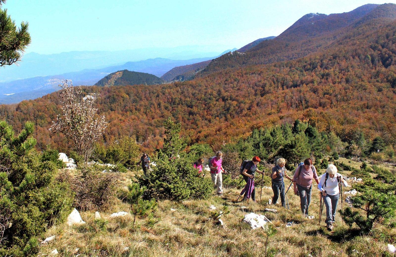 Neokrnjena Čičarija je vabila v svoja nedrja, na poti, posuti z listjem in kamenjem. Mimo Medvižice, nagrmadenega apnenčastega skalovja s škrapljami, smo se točno opoldne povzpeli na najvišji vrh Čičarije, 1083 m visoko Razsušico ali Glavičorko, kjer je bilo na kupu dovolj skal za vse utrujene. Glasovi so se s tišino razpršeno stapljali v neko novo celoto, da si lahko prisluhnil sozvočju ljudi in gozda, zapuščenih spalnih vreč in ležišč med balvani, sozvočju dreves in listja, ki se je pri nadaljevanju naše hoje v odtenkih zlate in rumene vrtinčilo v zraku ter padalo naokoli, pred nami pa se je kmalu odprl pogled na Malo Plešivico.