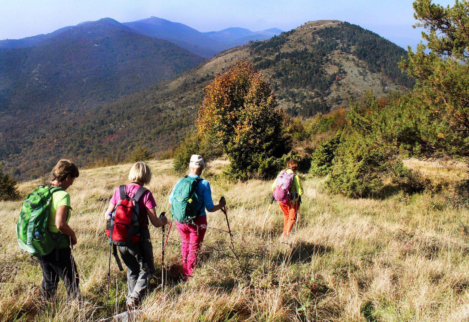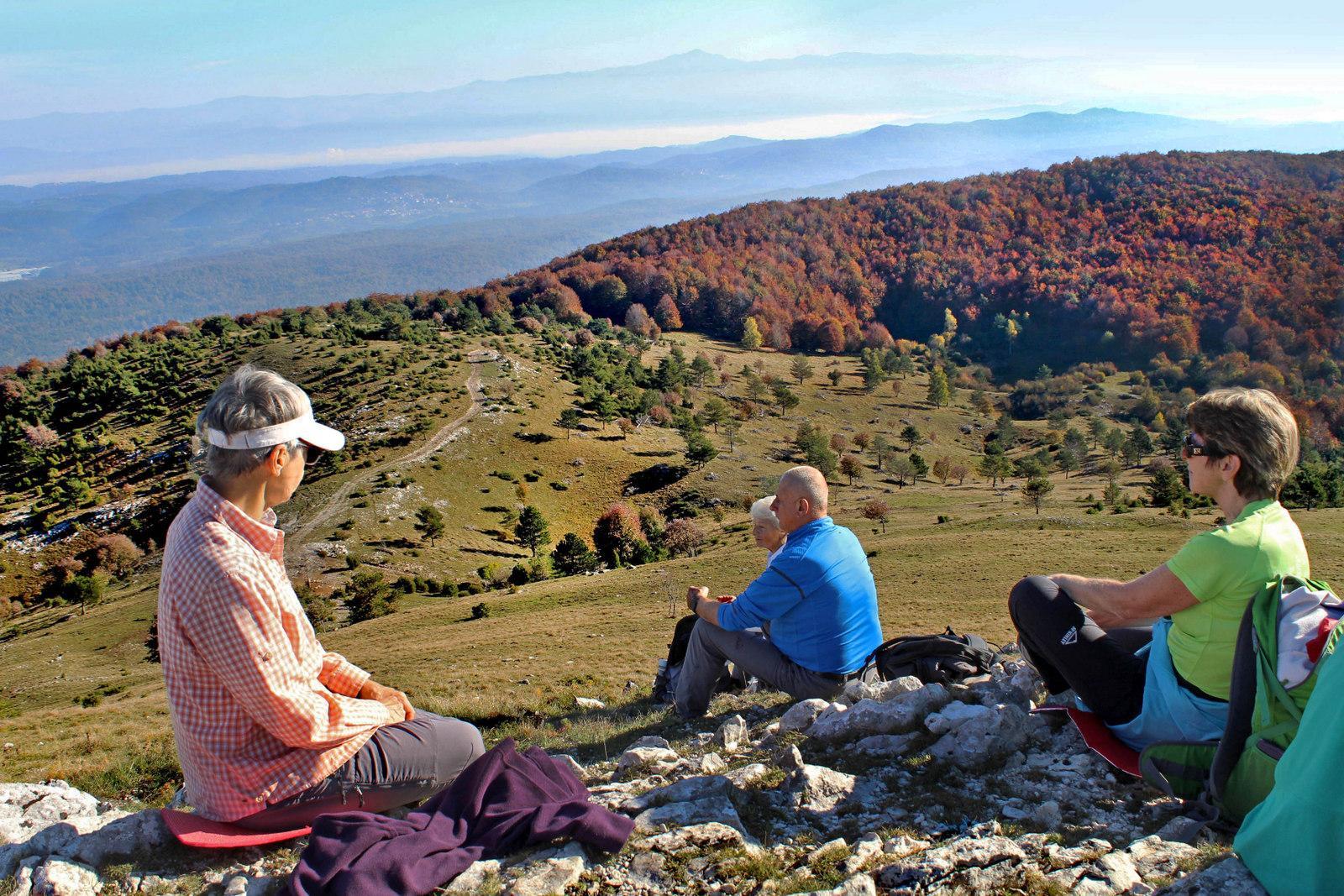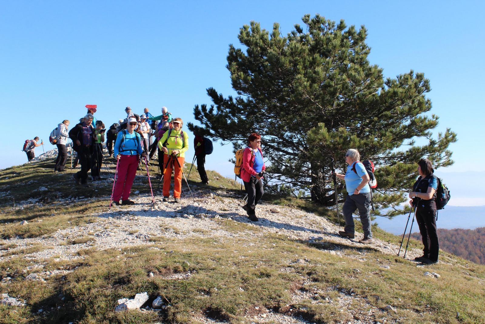 Med dišečim šetrajem in bori smo se ob pokušini modrih brinovih jagod naenkrat znašli na njenem vrhu z žigom in smernimi tablami na vse štiri strani. In že smo nadaljevali pot po gozdu, potopljeni v jesenske barve, zazrti v razrito listje in kamenje ob poteh ter v Veliko Plešivico, ki je v resnici nižja od Male. Oddahnili smo si, saj je na Velikih vratih čakal avtobus in smo Veliko Plešivico pobožali le s pogledi ter se odpeljali v civilizacijo na zasluženo kavico ali pivo.