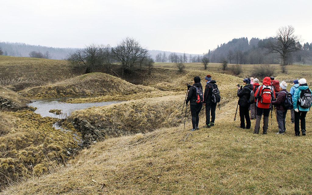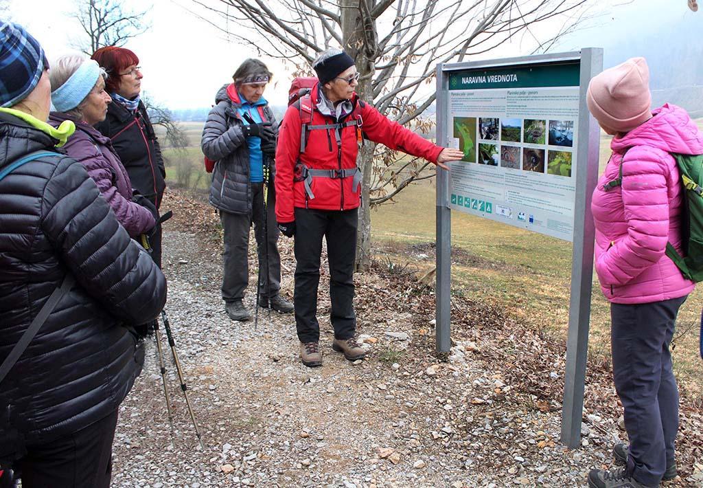 Odjuga je v drugi polovici februarja načela zaledenelo snežno odejo, spolzke poti pa niso ravno primerne za »stare kosti« Sončkov. Zato je bil obisk Planinskega polja primernejša izbira, saj je bil popolnoma kopen. Nizek vodostaj Unice je omogočal ogled dna polja, ki je naše najbolj tipično prelivno kraško polje. Na južni strani namreč voda doteka na polje (Unica, Malenščica, občasno Škratovka), na vzhodnem in severnem robu pa ponika in se pretaka navzdol proti izvirom na Vrhniki.