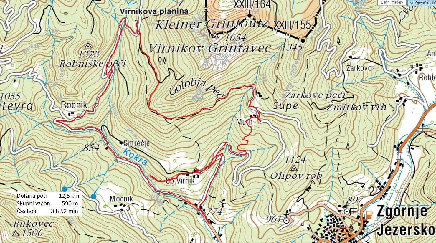 Virnikova planina je malo znana, do nje vodi gozdna cesta, ki omogoča dostop do koče Učnega centra Gorske reševalne zveze, ki stoji 1150 metrov visoko na zahodnem pobočju Virnikovega Grintovca. Avtobus smo zapustili pri turistični kmetiji Olipje v dolini Kokre, kjer je malo višje od reki nekdanji kamnolom lehnjaka. V avgustu je bil tam velik podor, skalovje iz lehnjaka je popolnoma zasulo cesto, vendar je bila v času našega pohoda cesta že očiščena. Med vzponom smo opazovali posledice okužbe velikega jesena s tujerodno glivo, ki povzroča jesenov ožig. Na Virnikovi planini smo imeli počitek z malico, nato pa nadaljevali po gozdni poti okoli Golobove peči pod južna pobočja Virnikovega Grintovca. Tu stoji na 1030 metrih nadmorske višine kmetija Murn, ker je zaradi prisojne lege edino na Jezerskem dozorela pšenica. Seveda v preteklosti, danes tu živi upokojen zakonski par, zelo gostoljuben, saj so nas mimoidoče povabili na pijačo. Po bližnjici, ki nam jo je pokazal gospodar Nace, smo se spustili v Murnov graben, od koder ni bilo daleč do ekološke kmetije Spodnji Virnik, kjer smo v sirarni nakupili skuto in sir. Blizu je izvir vode, nasičene z apnencem, kjer smo lahko opazovali področje, kjer se na mahovih izloča apnenec in nastaja kamnina lehnjak. Pri Olipju nas je čakal avtobus, pred odhodom pa se je prileglo hladno pivo, kava in klepet z gostoljubno gospo Ano.