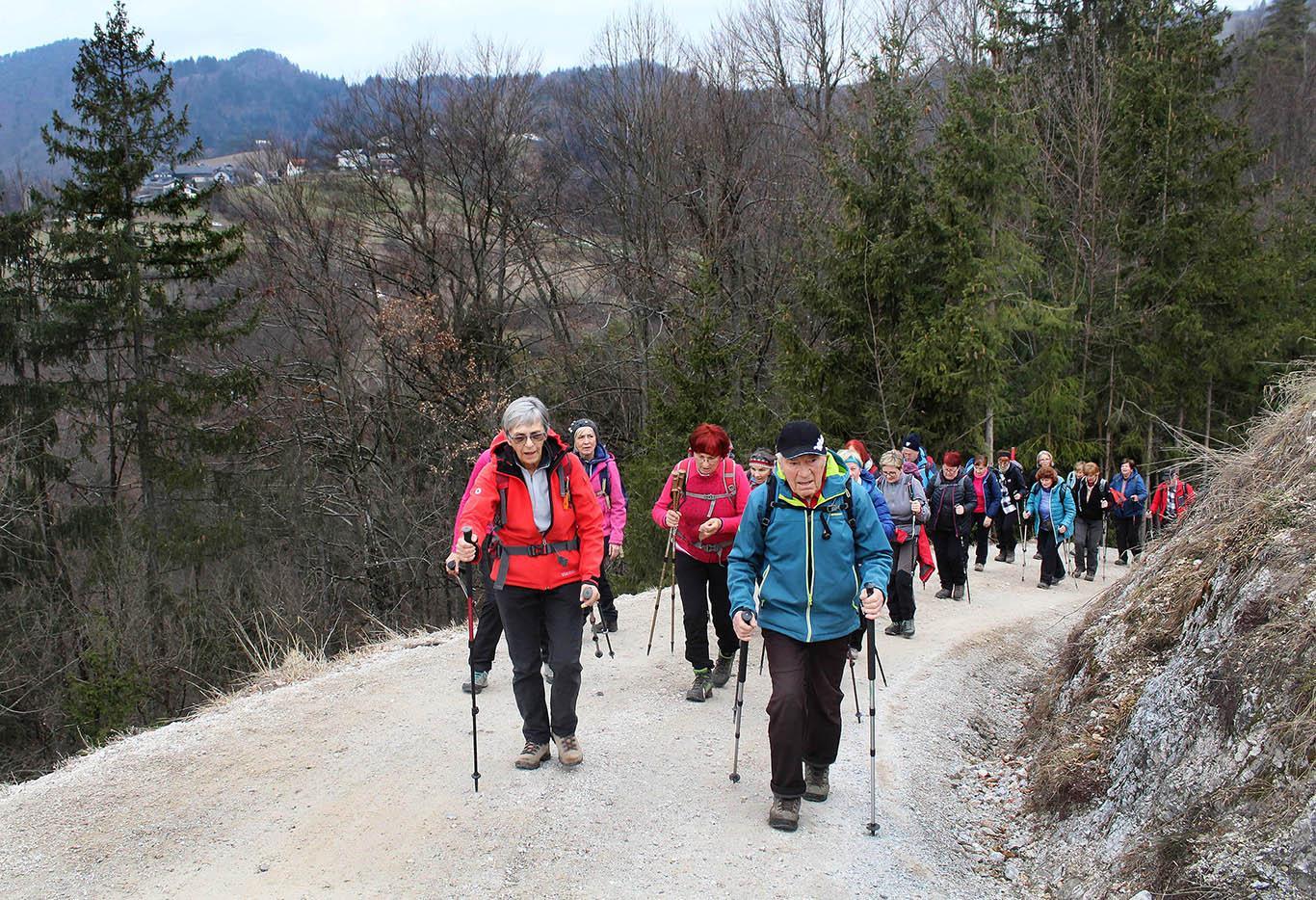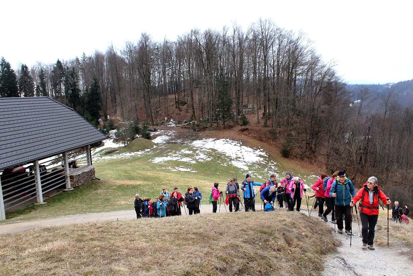 Po prvotnem načrtu naj bi s hojo začeli v Šentvidu, zaradi blata in preostalih zaplat ledu in snega na predvideni poti pa smo naš pohod pričeli v Žerovnikovem grabnu. Nekdanji kolovoz, ki je sedaj spremenjen v makadamsko cesto, je takoj pokazal, da bo vzpon na planoto Ravnik precej strm.