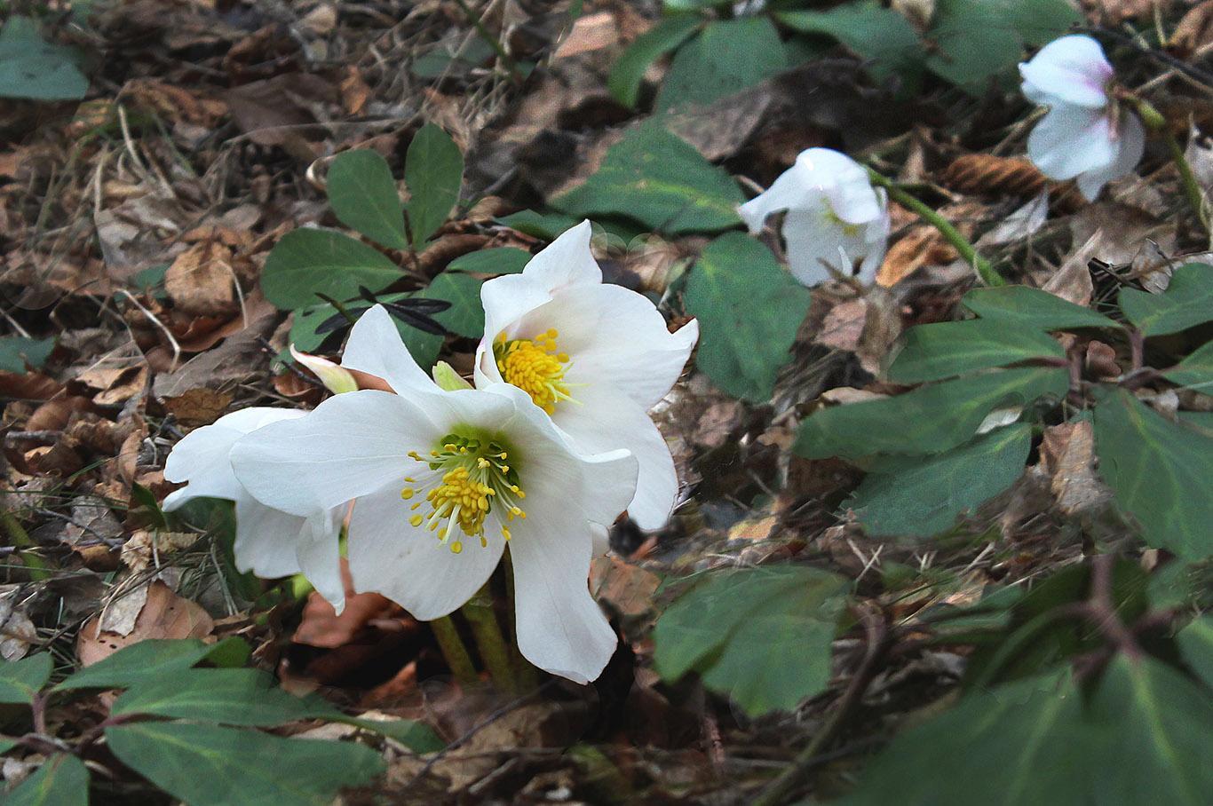 Hodili smo mimo posameznih kmetij, skozi redek gozd, ki pa je ponujal obilo cvetočega črnega teloha. Na polovici vzpona na planoto Ravnik se nam je pri kmetiji Seničar pridružil zlati prinašalec in nas spremljal vse do naselja Toško čelo. Naša družba mu je čitno prijala in veselo nam je kazal pot.