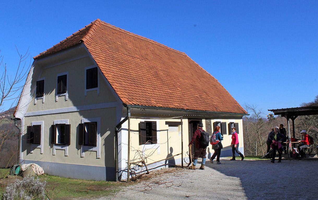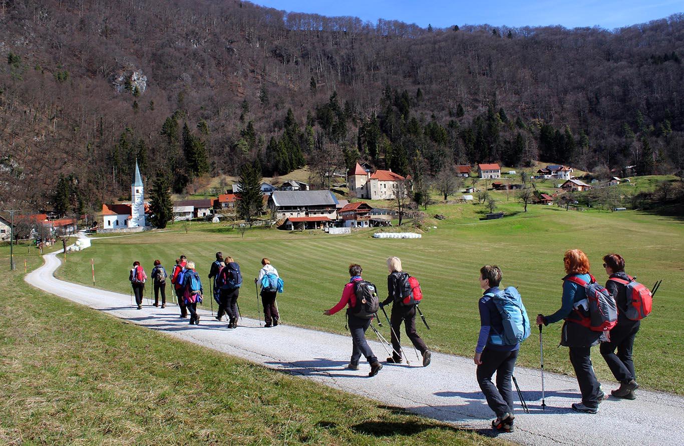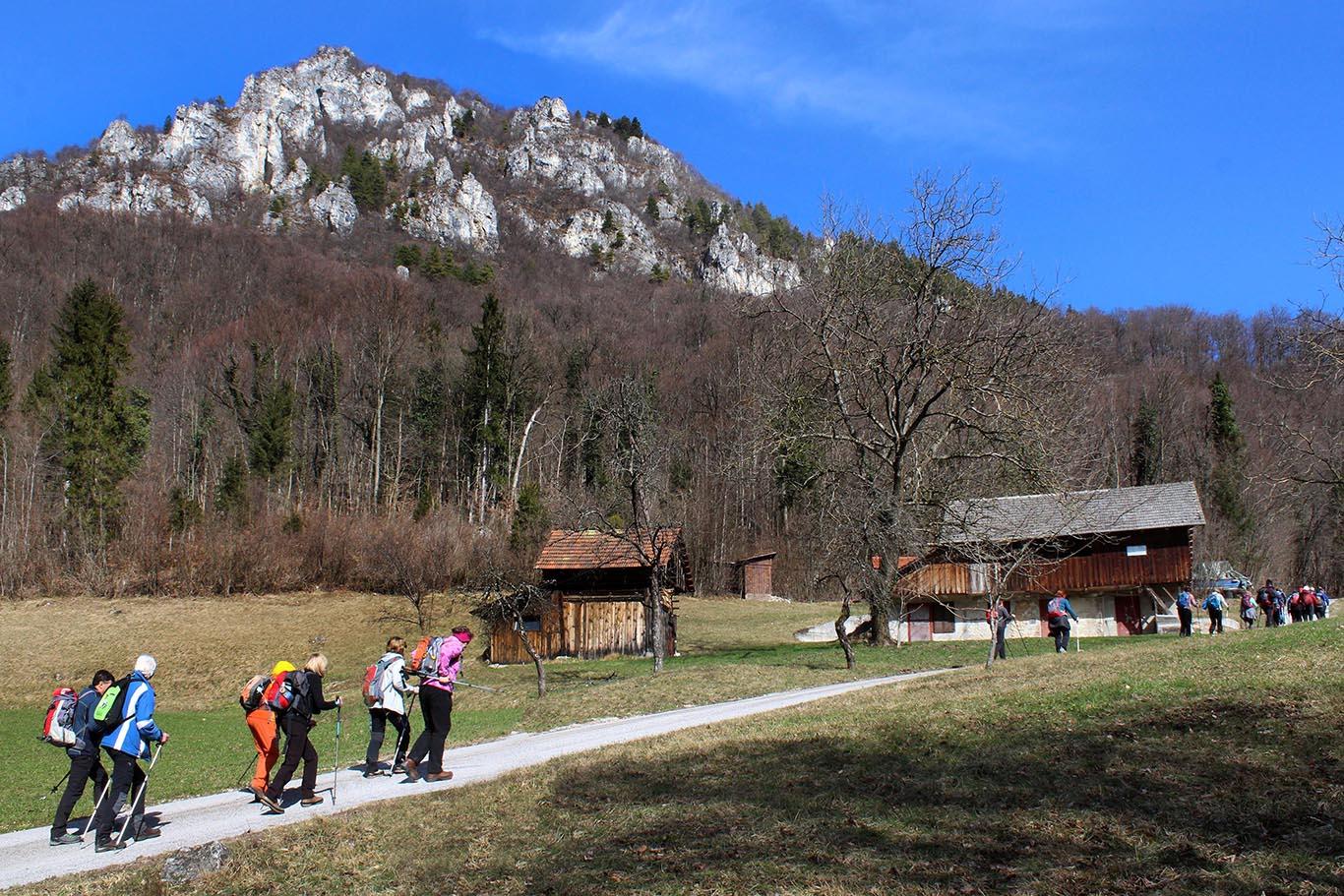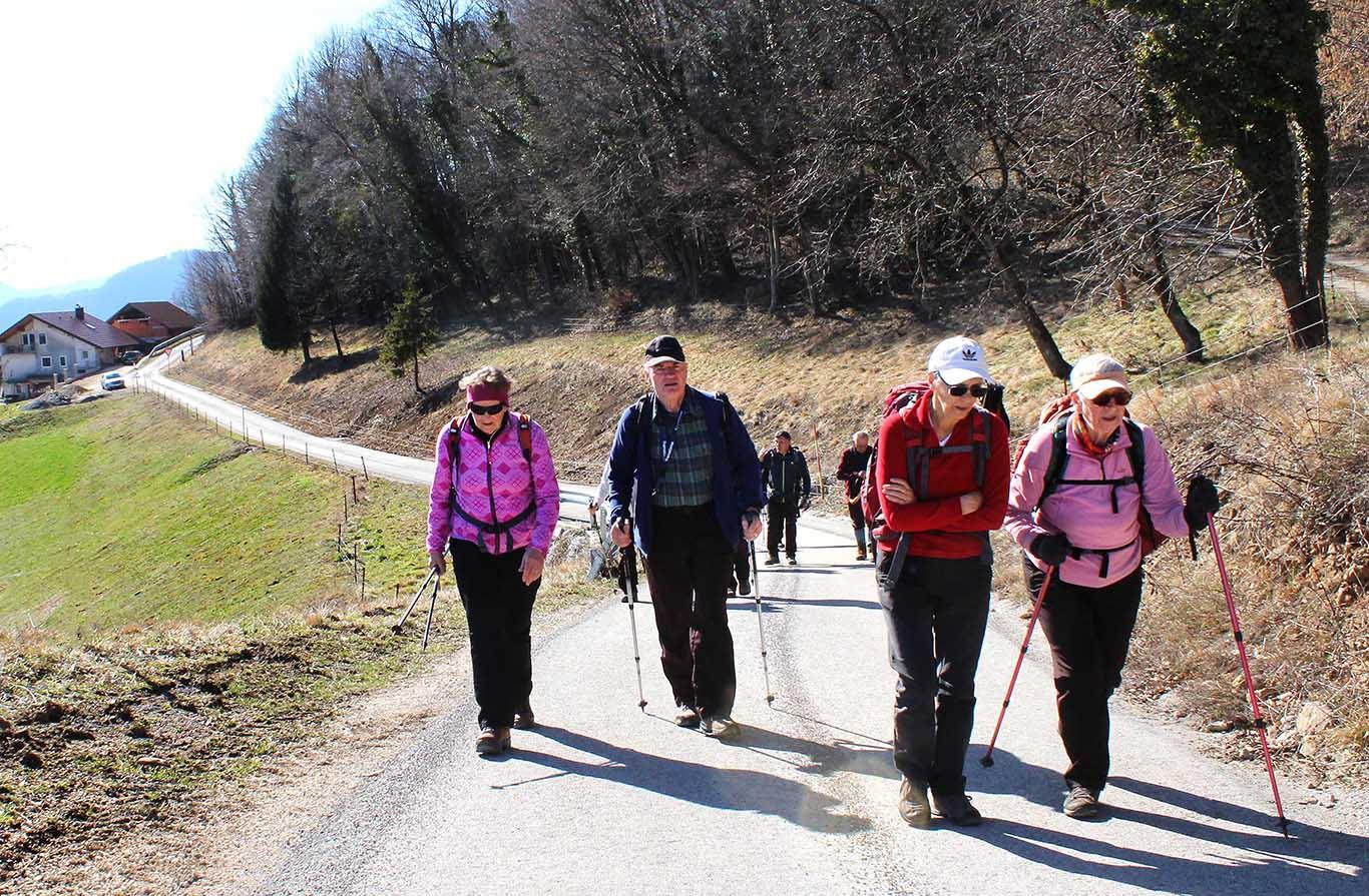 V zadnjem delu poti, ki se izpod Stražnika spusti proti Senožetim, smo se po strmi asfaltirani poti spuščali proti Rimskim Toplicam. Spotoma smo obiskali še Akerčevo domačijo, kjer nam je Sonja prebrala še dve Aškerčevi baladi in s tem dopolnila nabor pesmi, že prebranih na avtobusu, s katerimi je obogatila kulturni značaj našega tokratnega pohoda.