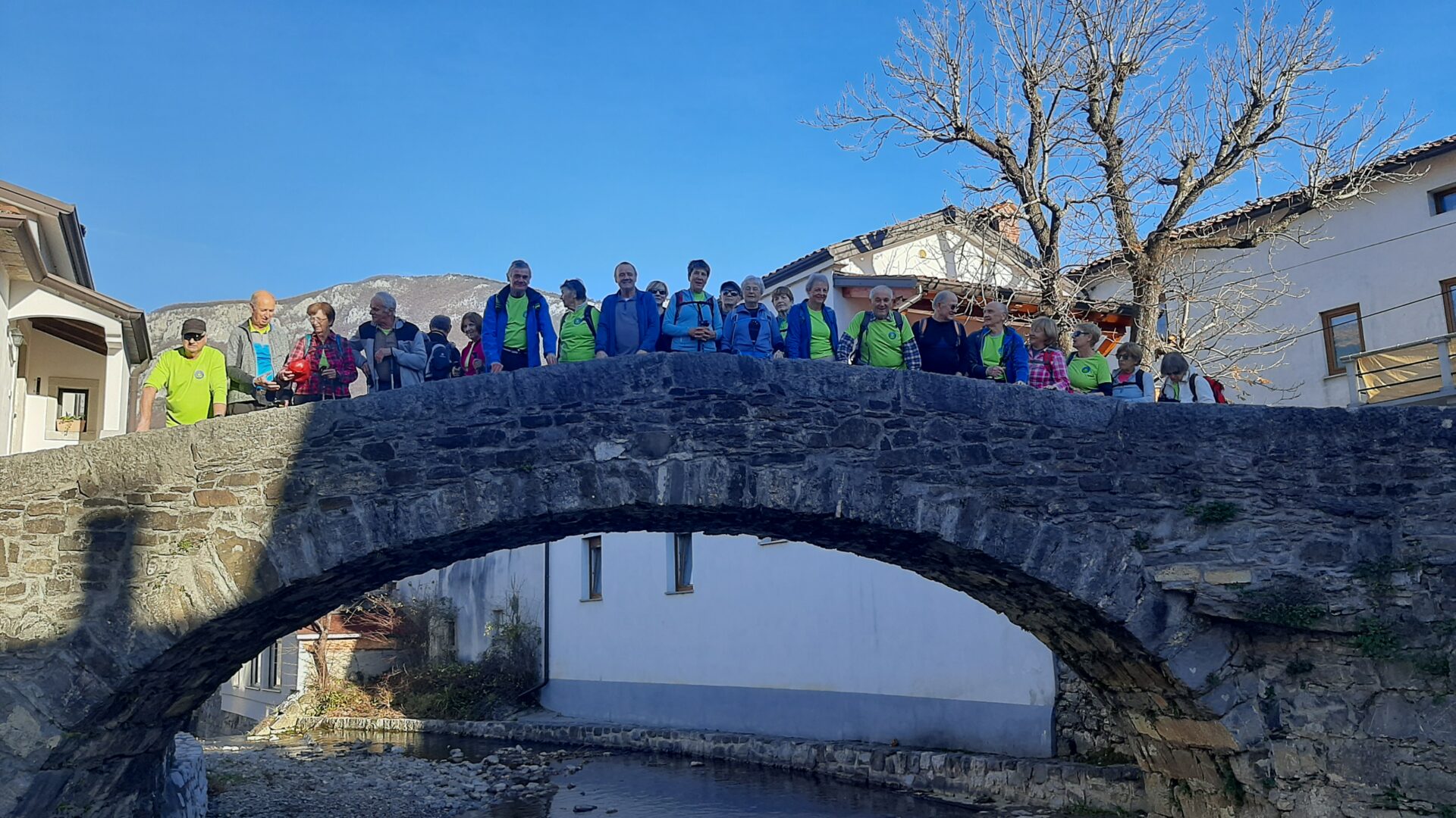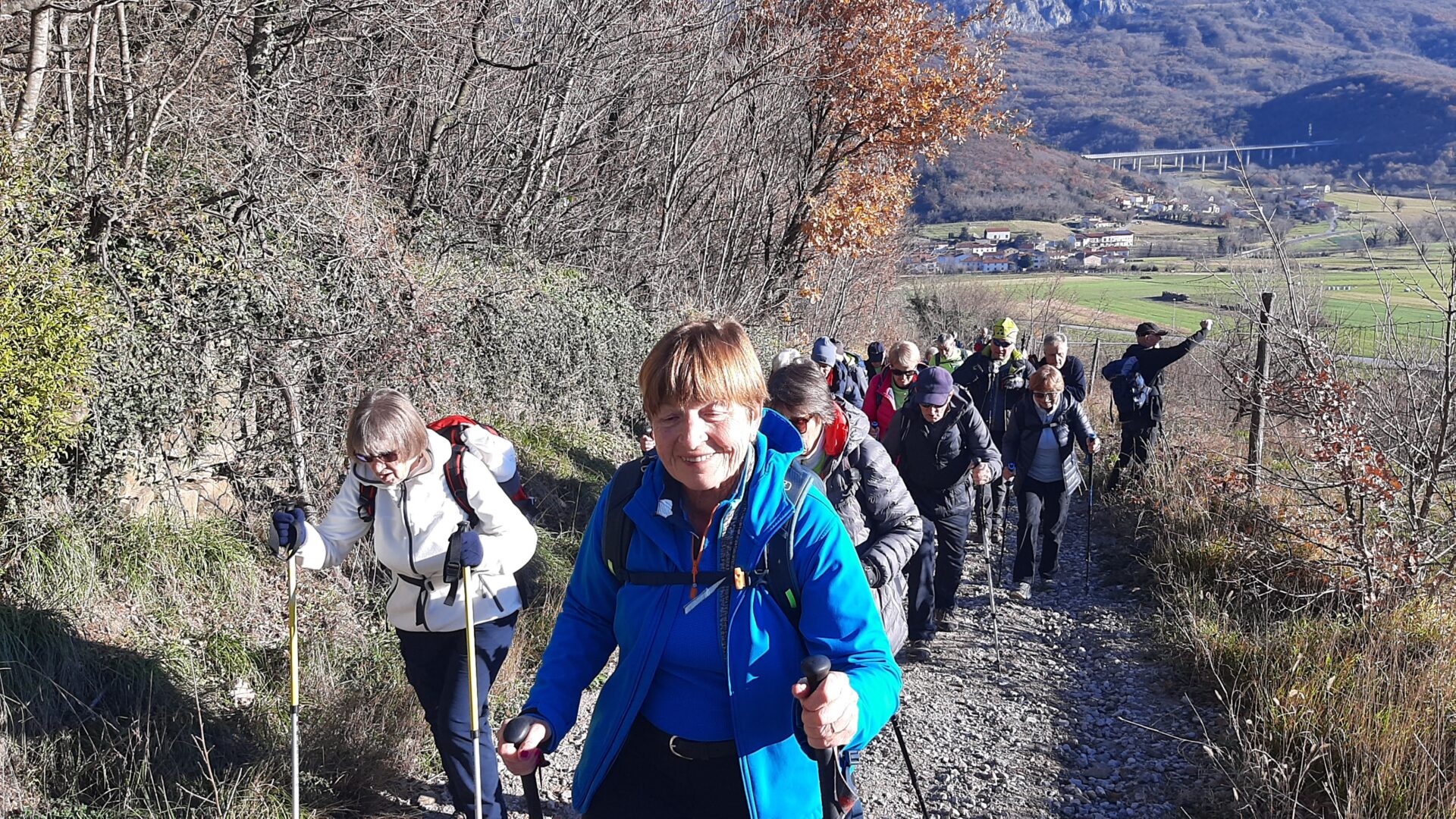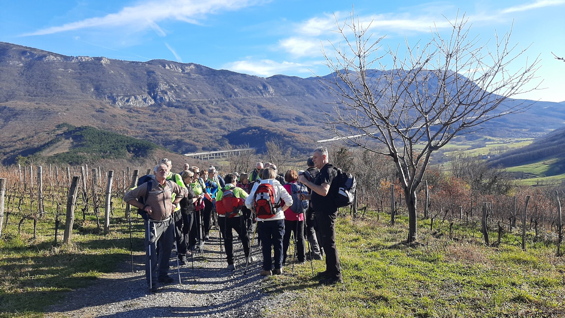 Ob vračanju čez znameniti kamniti most nad reko Vipavo, nam je naš novi vodnik Roman Novak postregel še z zanimivostjo, da je bila v Podnanosu, leta 1962, posneta hudomušna komedija z naslovom Tistega lepega dne. Roman je na Barjane naredil izreden vtis in veselimo se naslednjega pohoda pod njegovim vodenjem.