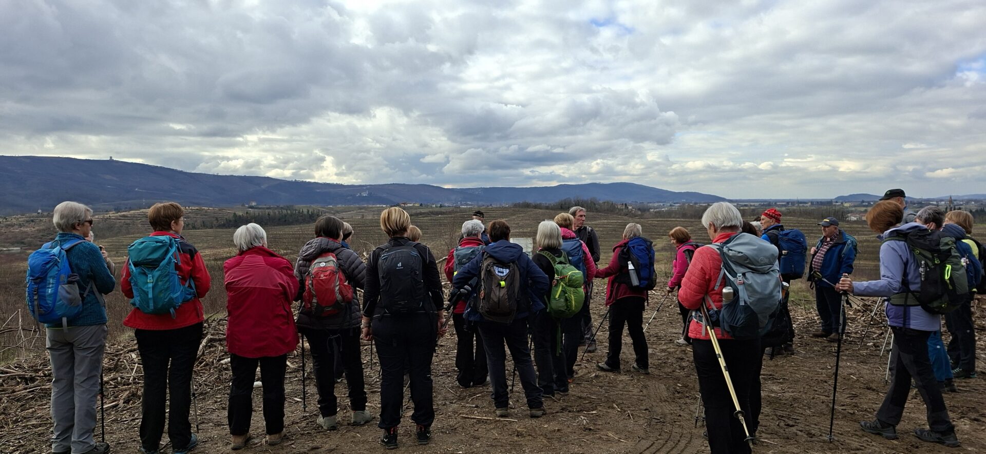 Naveličani dežja in težkih, sivih oblakov smo se Barjani odpeljali proti zahodu države, z upanjem po vsaj malo jasnega neba. Vodnik Roman Novak se je odločil, da se iz kraja Bukovica pri Vrtojbi povzpnemo na grič Sveti Ot.