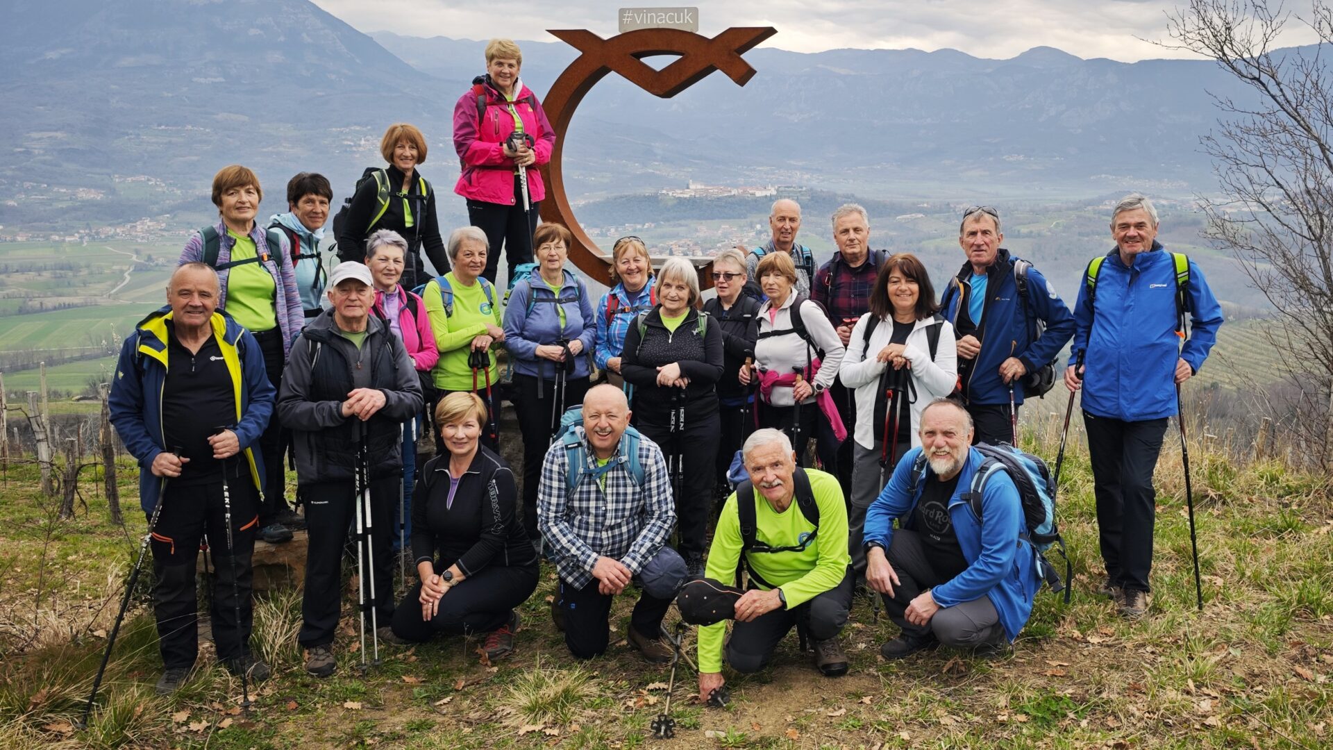 V vasi smo se pričeli vzpenjati proti najvišji točki današnjega pohoda. Školj je hrib, ki se dviga nad Vipavsko dolino. Z višine 418 m ponuja zelo lepe razglede na dolino, vinograde, polja in bližnje vasi. V preteklosti je bil Školj strateško pomemben, danes pa je hrib zaradi mirne narave priljubljen predvsem za sprehode in izlete. Po krajšem postanku na vrhu smo se spustili proti vasi Šmarje, ki leži na manjši vzpetini nad dolino. V Šmarjah se v okviru vinskih prireditev občasno odvijajo degustacije vinskih ponudnikov. Barjane je pritegnila Grofova vinska klet, ki je ena najstarejših in najbolj cenjenih vinskih kleti v Vipavski dolini, znana po kakovostnih vinih.