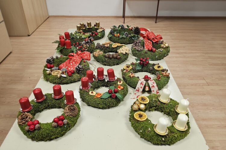 Vrhnika, 26. 11. 2025 Na delavnici izdelovanja adventnih venčkov se nas je zbralo kar lepo število. Naši mentorici, Irena Rossi in Cvetka Resnik, sta nas naučili izdelati obod venčka, oblečen s suhim mahom in pritrjen s tanko barvasto kovinsko...