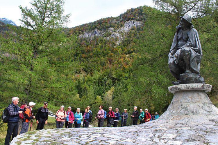 Za prvi oktobrski pohod smo se odločili za obisk doline reke Soče, za Trento. Po megli v Ljubljanski kotlini nas je na Gorenjskem razvajalo sonce, občudujoče smo zrli v Špikovo skupino in zasneženi Triglav pod modrim nebom. Na Vršiču...